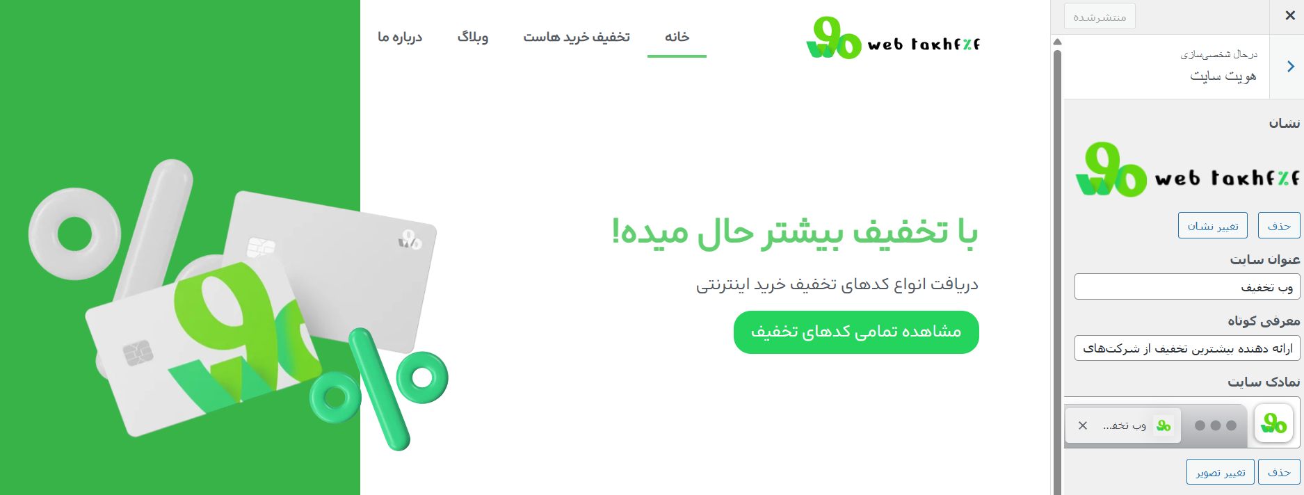 سفارشیسازی/ویرایشگر سایت: هماهنگی عنوان هدر، لوگو و فاوآیکن.