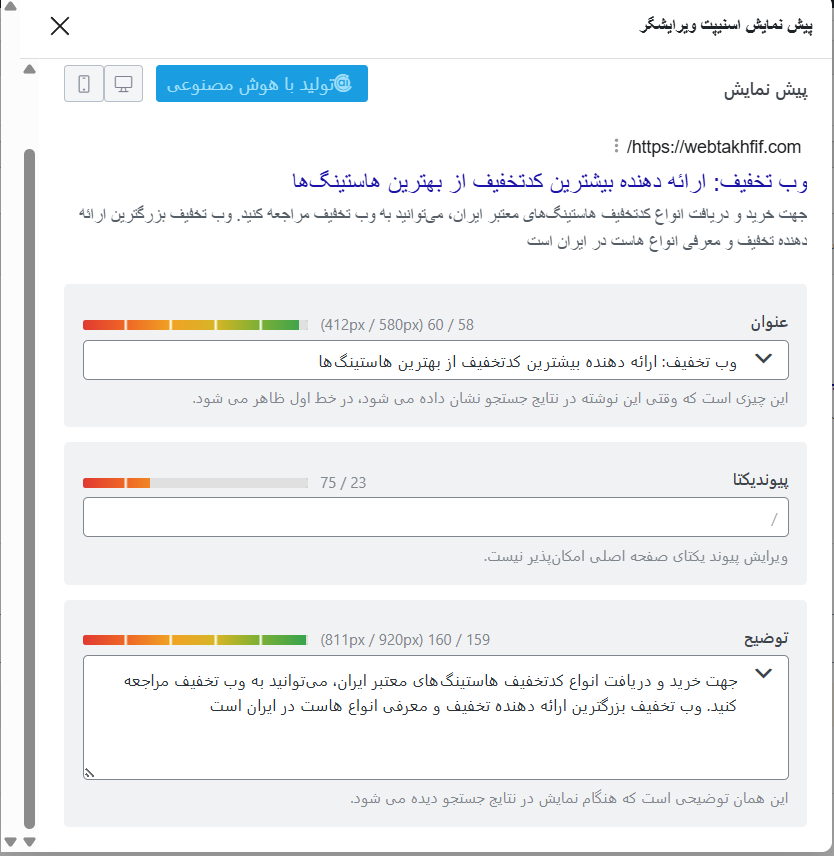 اگر هر زیرسایت افزونهٔ سئوی جداگانه دارد، عنوان/توضیحات صفحهٔ خانه را برای هرکدام مستقل تنظیم کنید.